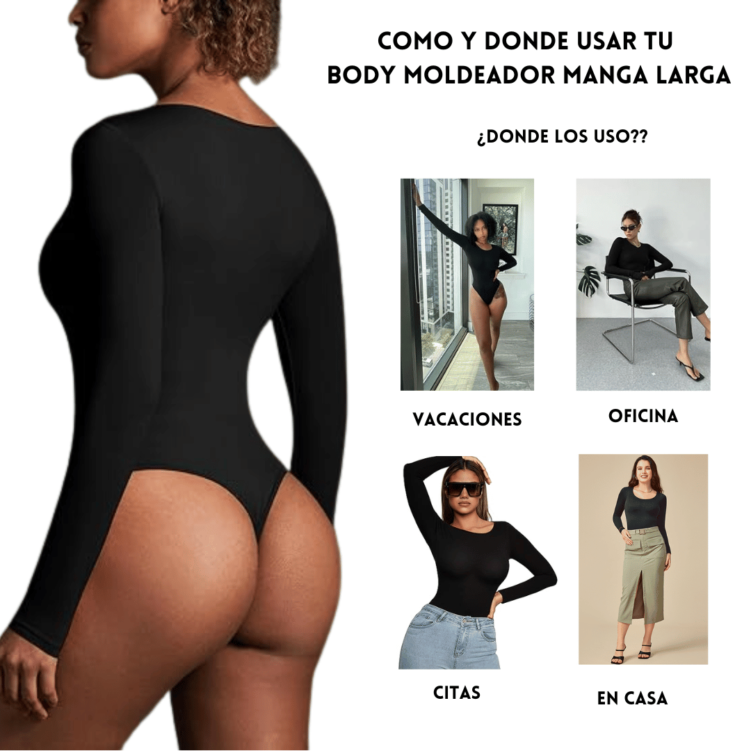 Transforma tu silueta con nuestro body moldeador de manga larga para mujer.