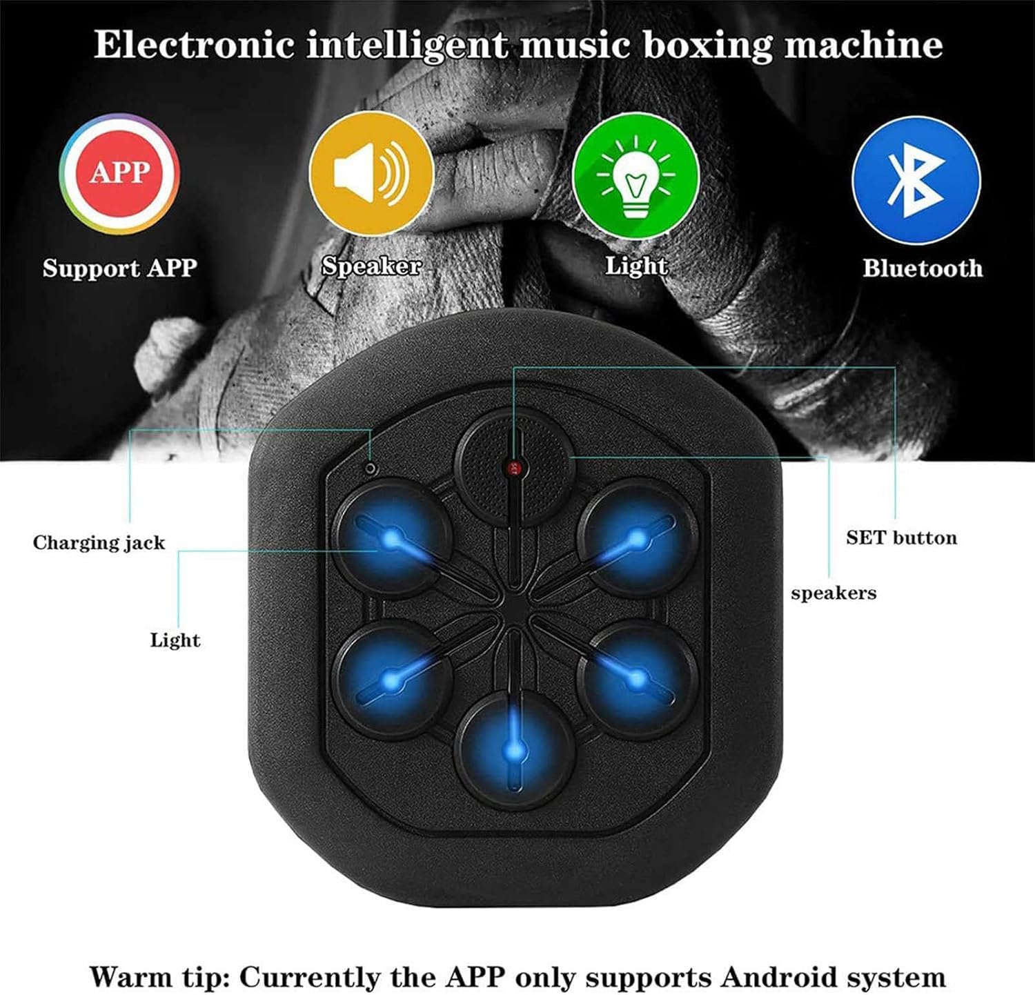 Modo de retroiluminación interactiva: El equipo cuenta con un innovador sistema de retroiluminación que guía tu entrenamiento. Las luces LED se encienden para indicar la posición de golpeo, ayudándote a practicar al ritmo del boxeo y mejorar tu precisión.