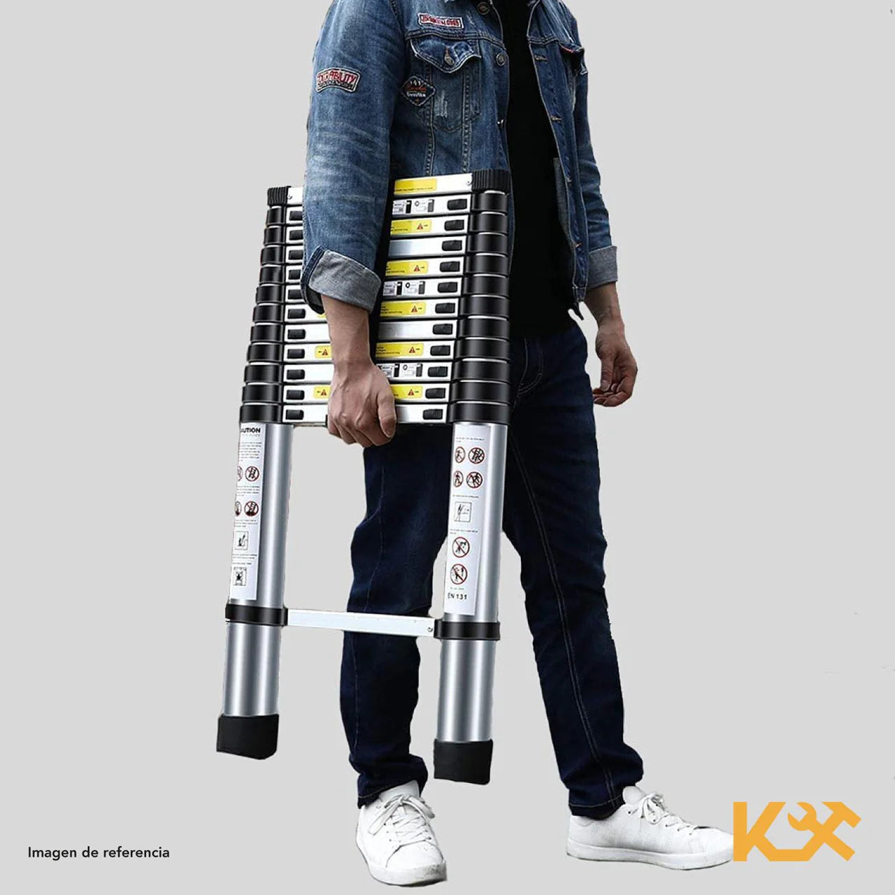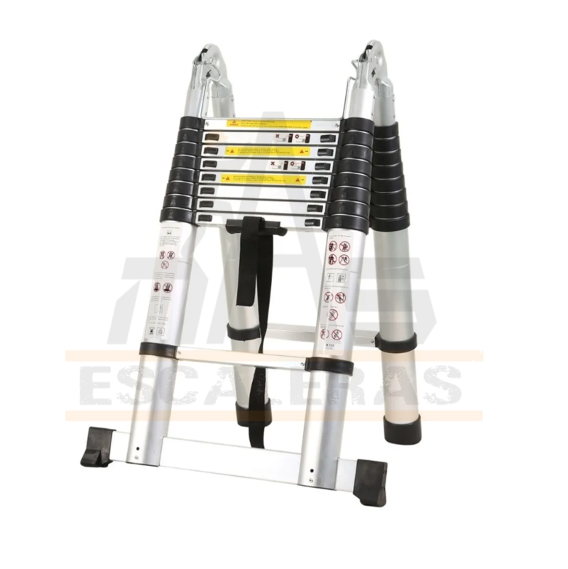 MODO DE USO: Extiende la escalera hasta la altura deseada y bloquea cada sección de forma segura antes de usarla.