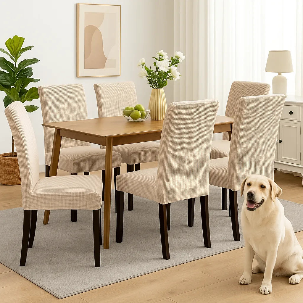Las Fundas para Sillas PrettyGuard™ están diseñadas para darle a tu comedor una segunda vida sin gastar en muebles nuevos. Gracias a su tejido elástico premium, 100% impermeable y lavable a máquina, protegen tus sillas del desgaste diario, derrames, niños y mascotas. Con una apariencia moderna y elegante, son la forma más rápida, económica y estilizada de transformar cualquier espacio.
