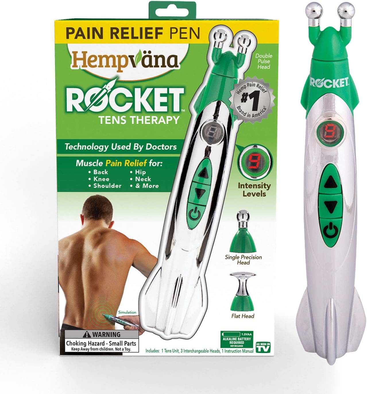 El masajeador de cuello Neurocket™ tiene 9 niveles de intensidad .