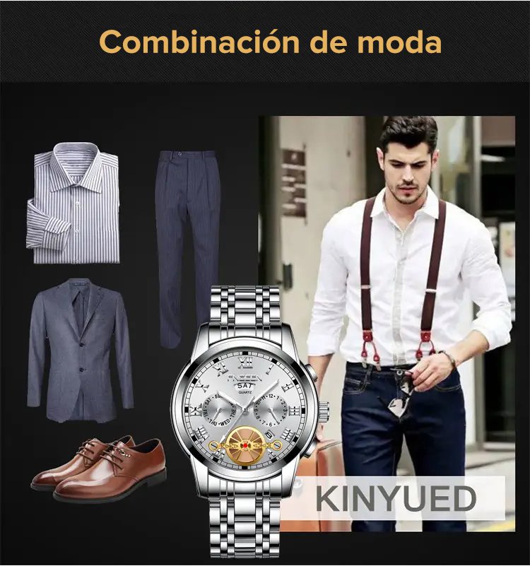Versatilidad de estilo: Este reloj es perfecto para cualquier ocasión, desde eventos formales y reuniones de negocios hasta salidas casuales. Su diseño versátil asegura que siempre estés bien vestido ya la moda.