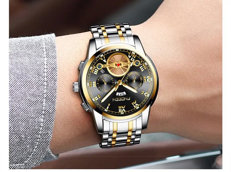 Cronógrafo: La funcionalidad de cronógrafo añade un toque deportivo al diseño clásico del reloj. Este cronógrafo es útil para medir intervalos de tiempo precisos, perfecto para actividades deportivas o cualquier situación que requiera un temporizador.