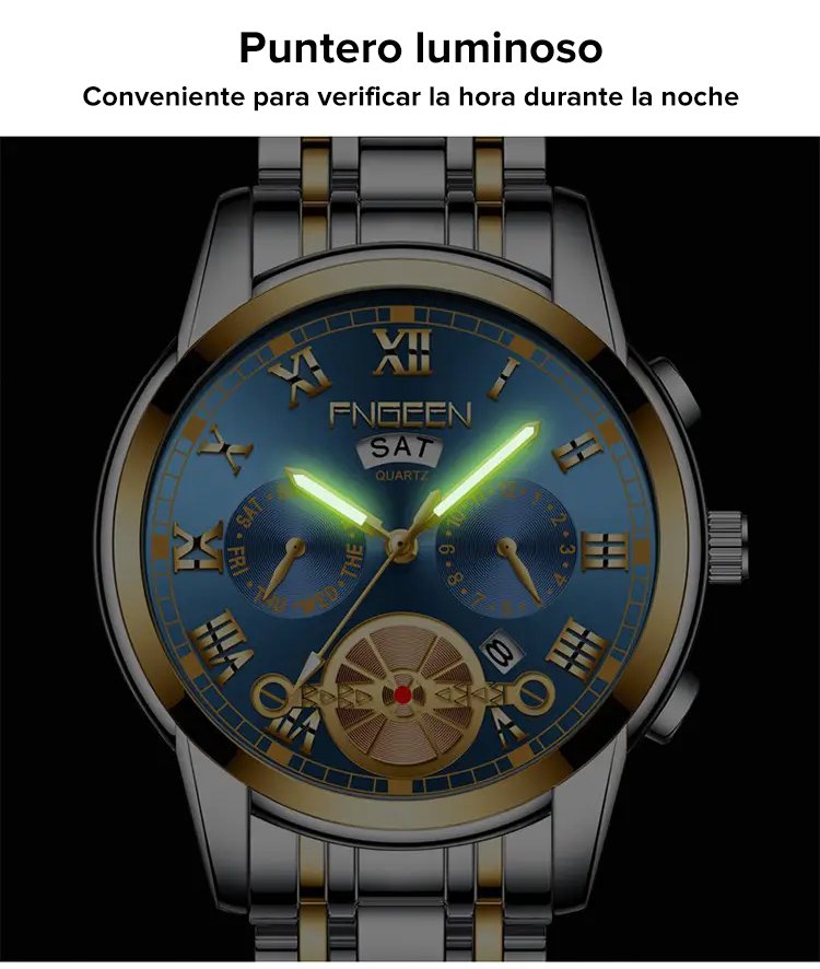 Este reloj ha sido meticulosamente diseñado para el caballero moderno que aprecia la combinación de funcionalidad y elegancia.