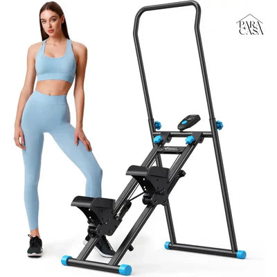MODO DE USO: Coloca los pies sobre las plataformas y ajusta los mangos a la altura deseada. Inicia el movimiento de subida y bajada con una postura erguida y natural. Ajusta la resistencia según tu nivel.